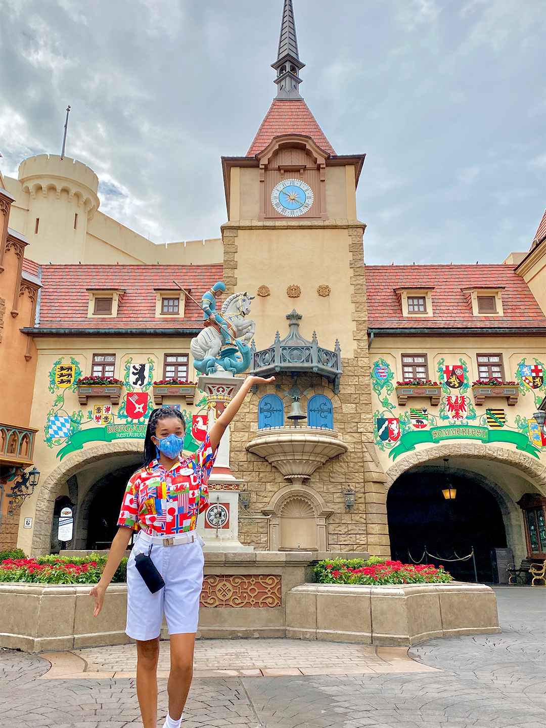 Unfortunately, that experience was cut short, but when the program returned in 2021, I had the opportunity to come to Walt Disney World! On my Disney World program, I worked food and beverage at EPCOT in the Germany Pavilion. Part of my role at the Biergarten Restaurant involved seating and greeting, so I got to interact with guests all the time.