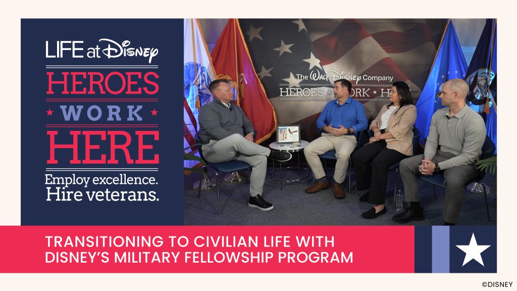 Throughout the series hear from veterans from across The Walt Disney Company share their experiences of transitioning to civilian life after a career in the military. You will learn about advice, their personal stories and more in this three-episode series.